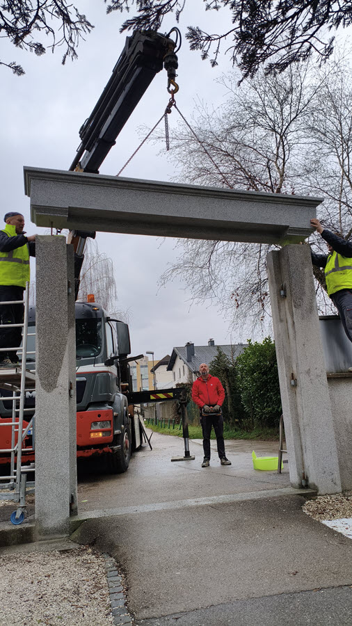 Na vhodu v pokopališče Stožice so bili betonski stebri in nosilec močno poškodovani. Celotni vhod je delo prof. Jožeta Plečnika oz njegovih učencev in kot tak pod budnim očesom ZVKD-ja. Podjetje Žale d.o.o. nam je zaupalo obnovo obstoječih stebrov ter izdelavo novega terrazzo nosilca.