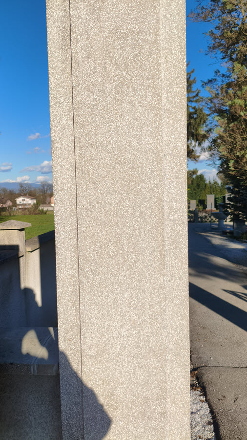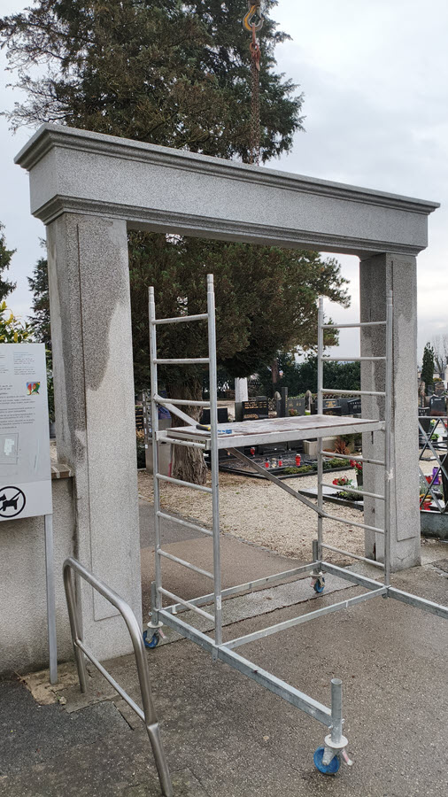 Na vhodu v pokopališče Stožice so bili betonski stebri in nosilec močno poškodovani. Celotni vhod je delo prof. Jožeta Plečnika oz njegovih učencev in kot tak pod budnim očesom ZVKD-ja. Podjetje Žale d.o.o. nam je zaupalo obnovo obstoječih stebrov ter izdelavo novega terrazzo nosilca.
