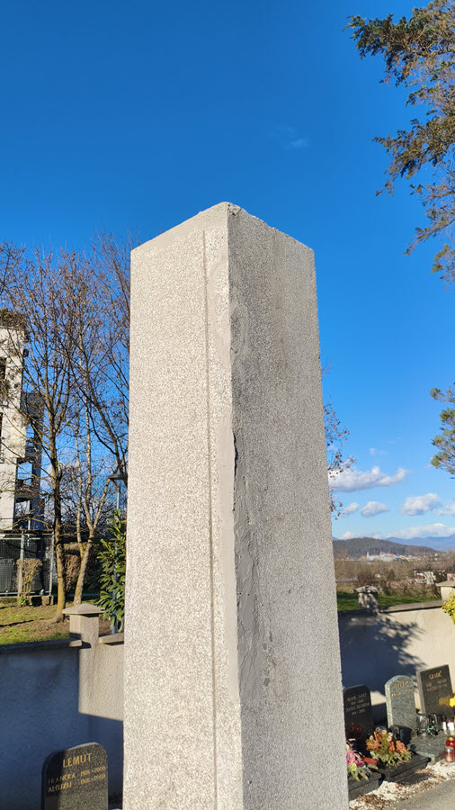V sodelovanju z restavratorko gospo Petro Rems, smo stebre dodatno utrdili ter popravili vse dotrajane in poškodovane dele. Nov nosilec je natančna kopija obstoječega in je bil izdelan v terrazzo tehniki.