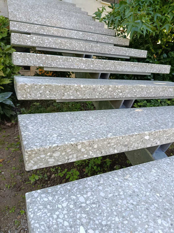 Naše štokane betonske stopnice združujejo trajnost in estetiko. Siva barva daje prostoru sodoben videz, štokana površina pa poskrbi za protizdrsnost in prijetno teksturo. Stopnice so primerne tako za notranje kot zunanje prostore, kjer želite robusten, a hkrati eleganten element.